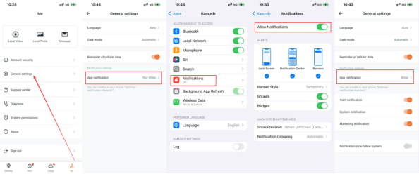 When motion is detected and the camera connection status is good, you will receive a notification on your phone depending on the notification type. If you want to receive notifications, make sure you have completed the following prompts:
