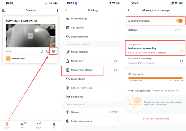 3) You can select the storage mode (Motion Detection Recording/Continuous Recording) and set the schedule. Battery cameras only support motion detection recording.