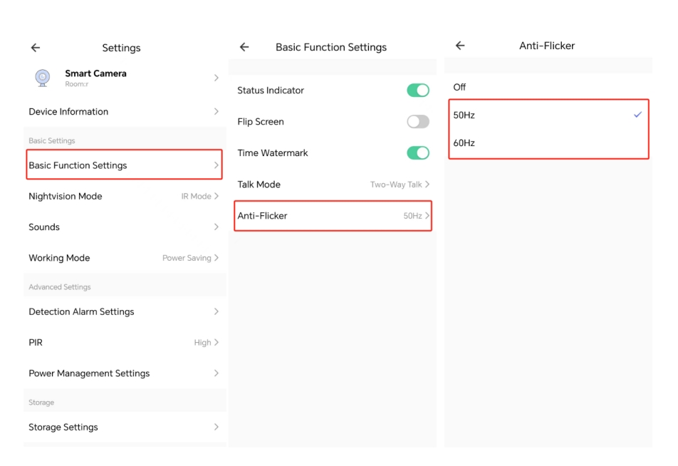 Here are the steps to enable the anti-flicker feature:
